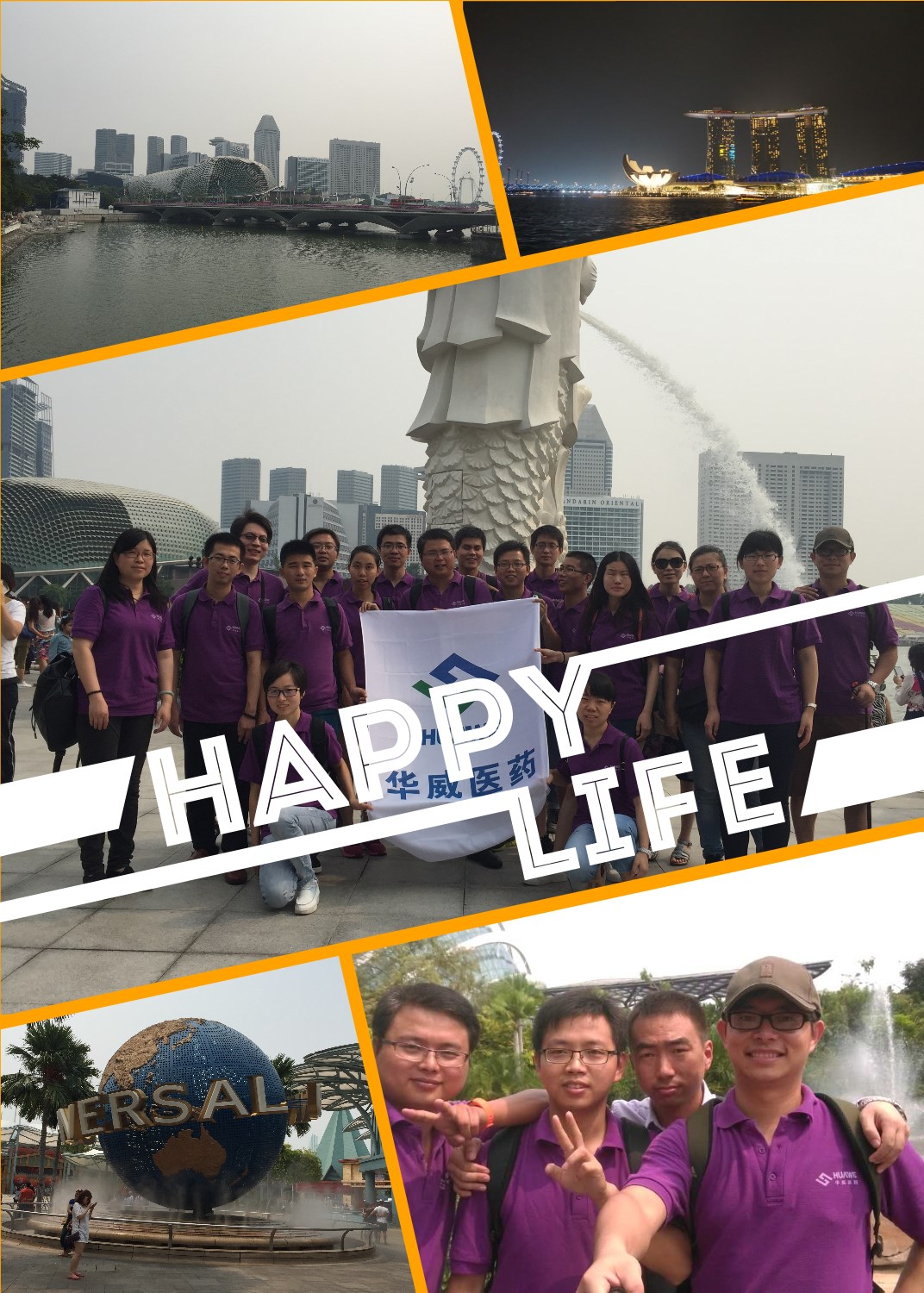 2015年10月20日,華威醫藥組織的2014年度第一批優秀員工出國旅游開啟序幕。這為期5天的新加坡行程,華威人游覽了魚尾獅公園、濱海灣公園、花芭山、名勝世界、節慶大道、海洋館、時光之翼等景點。夜晚時分,大家沿新加坡河順流而下,一河兩岸,夜色下高樓大廈燈火璀璨,閃爍與耀眼的霓虹燈把城市的夜晚裝點得繽紛多彩,獅城的夜景盡收眼底。