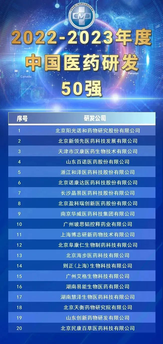 中國醫藥研發50強榜單